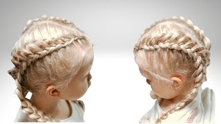 Прическа Два дракончика с ободком из кос. Детские прически