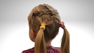 Красивые Детские Прически / Два высоких хвоста с косами / Как заплести косы пошагово