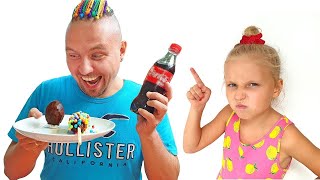 Kids fairy tale about funny witch. Little baby pretends play with big toy cars with dad. Compilation of funny stories for kids about Alisa and Eva and their active games and adventures with dad.