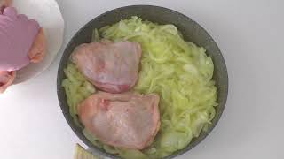 Ингредиенты: 600 гр. куриного филе, 1 средняя луковица, 250 мл. сливки, 300 гр. грибов (любых), соль, перец, специи.