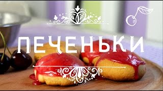 Рецепт песочных печенек с вишневой глазурью.