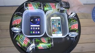 Samsung Galaxy S7 vs. iPhone 6S Mountain Dew 30 Hours Freeze Test! Will They Survive?!